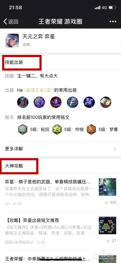 找到后我们可以看到这个英雄的技能出装和铭文搭配,下方还有大神攻略,可以帮助我们快速掌握这个英雄