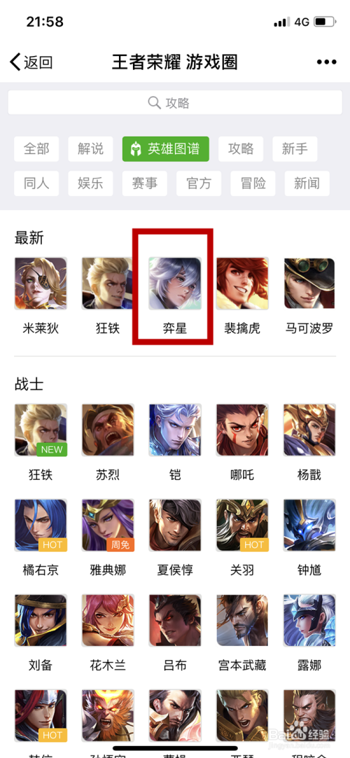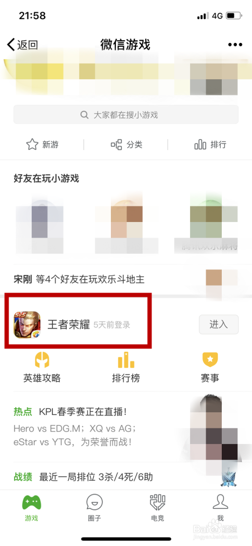这时可以看到各种游戏的战报,我们选择王者荣耀,可以看到它的下方有个【英雄攻略】,点击它