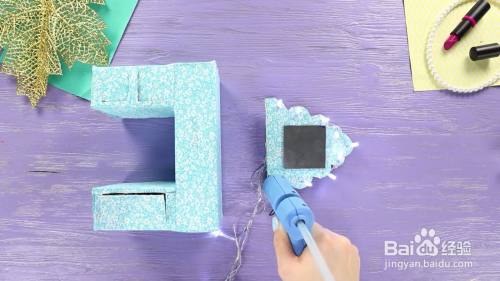 最后用热胶将柜子和镜子沾在一起就完成了。