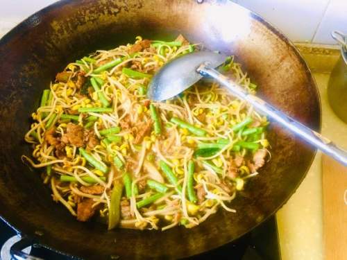 4放入黄豆芽翻炒均匀。
