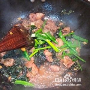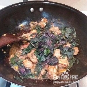 加入紫苏叶翻炒均匀