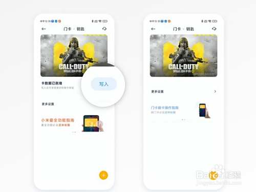 3、卡数据准备就绪后点击“写入”并将实体卡贴近NFC区域即可读取完成。