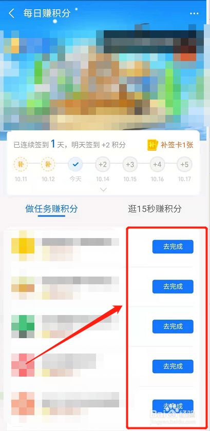 在签到页面点击【去完成】,完成任务即可获得相应的积分