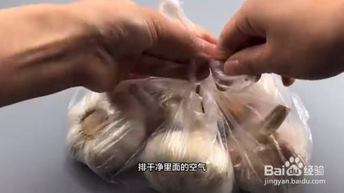 放置好后将塑料袋的封口系紧,排干净里面多余的空气。