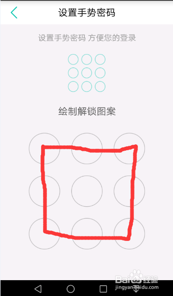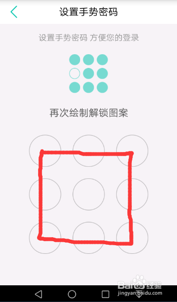 开启设置手势密码,需要重复设置两遍,这里设置第一遍。