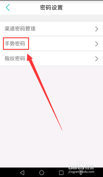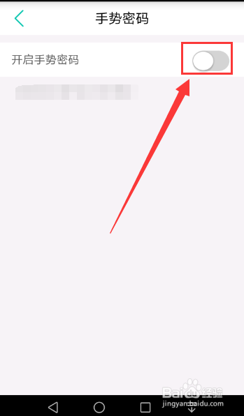 进入【手势密码】页面后,点击【开启手势密码】右边的开关按钮。
