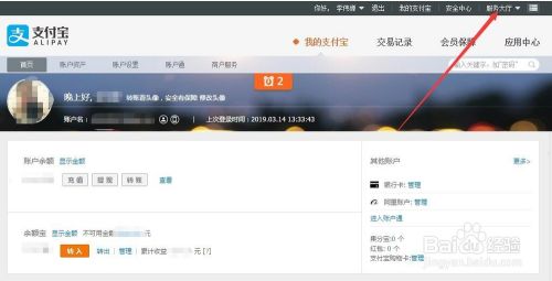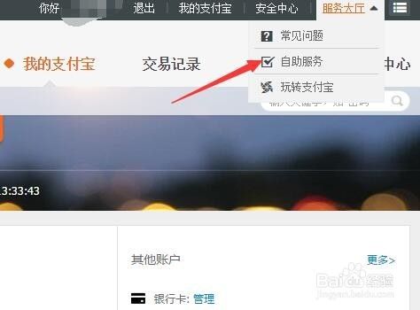 登录上自己的支付宝页面后,点击右上角的白色小字体“服务大厅”