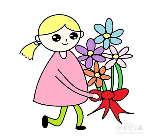 第八步,最后涂上颜色,这样儿童节简笔画就画好了。