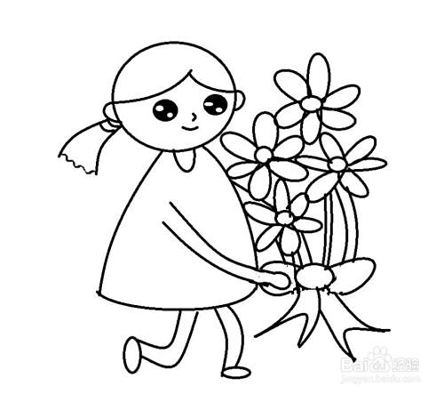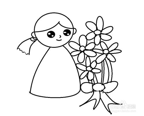 第四步,画出麻花辫和蝴蝶结,如图所示。
