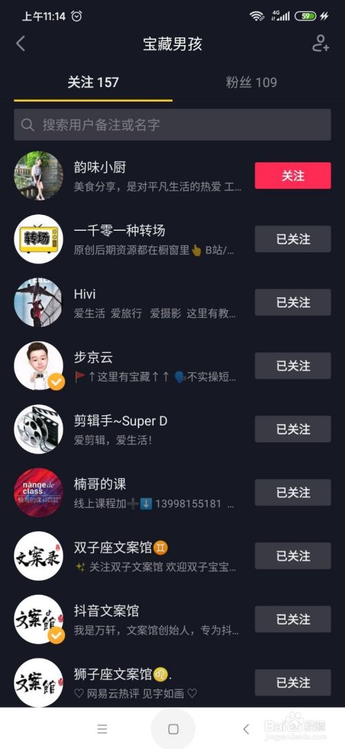 点击关注,此时大家就可以看到自己曾经关注过的人了,接下来大家会发现在关注的人旁边有一个已关注