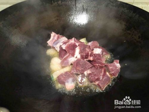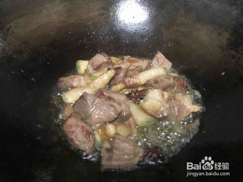 锅中入油放入生姜八角炒香。