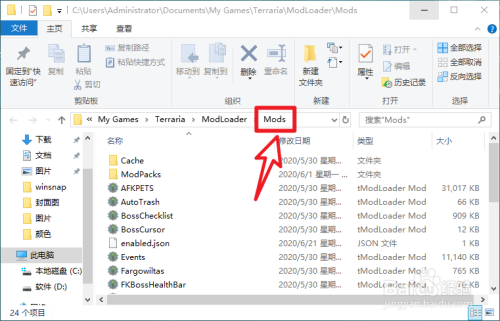 打开tModLoader目录下的mods文件夹,放入mod。