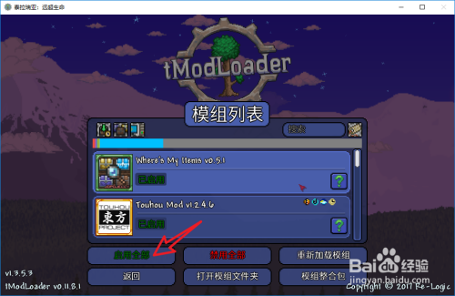 查看mod列表,启动已选mod。
