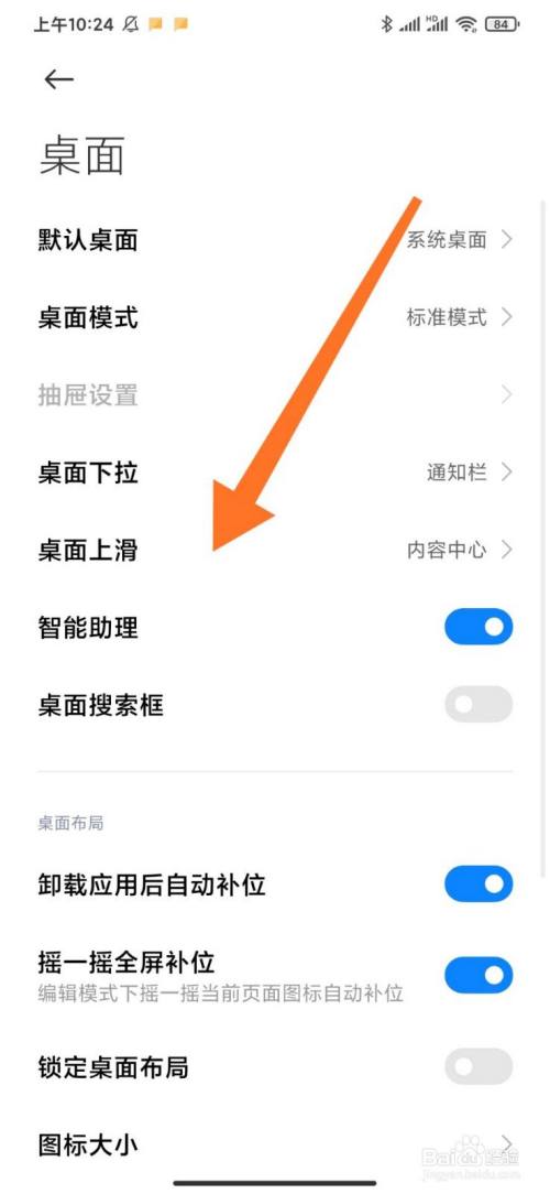 选择桌面上滑选项。