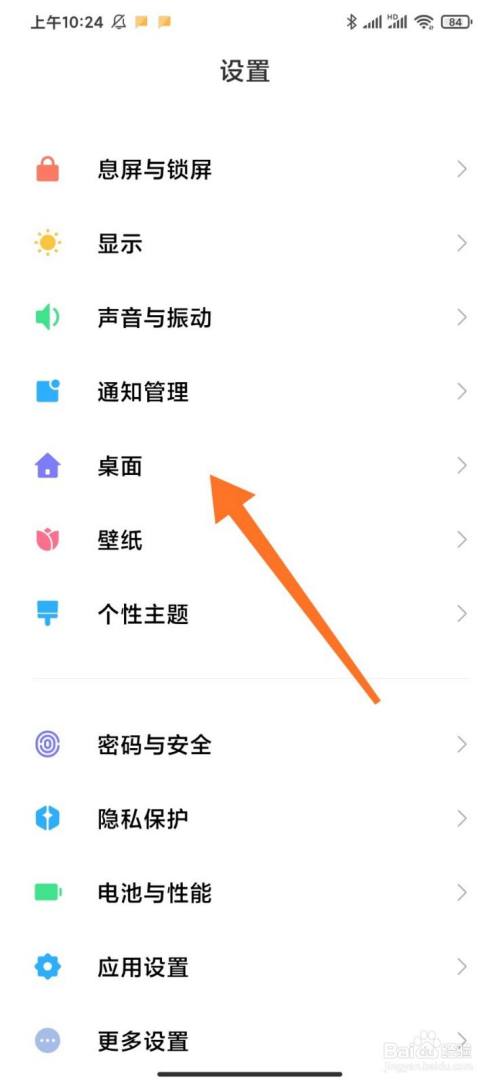 进入手机设置页面,点击桌面选项。