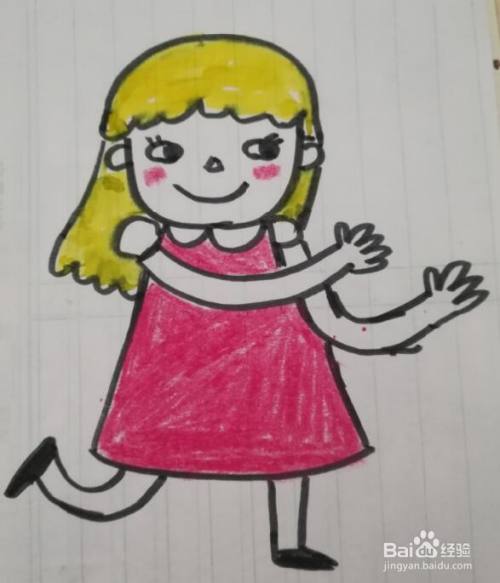 最后一步,如图所示,给卡通女孩涂上自己喜欢的颜色,完成。