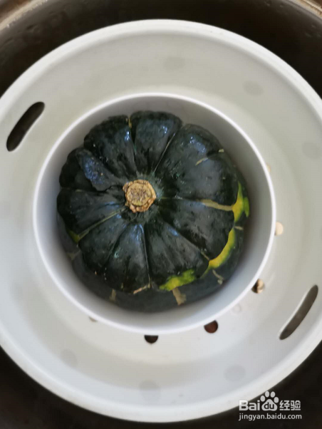 南瓜从头部切开,掏空内部,清洗干净,如图所示
