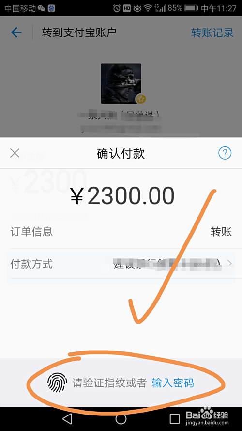 因为转账金额较大,所以需要验证完成的对方的名字,补充完整对方的名字后点按确定。