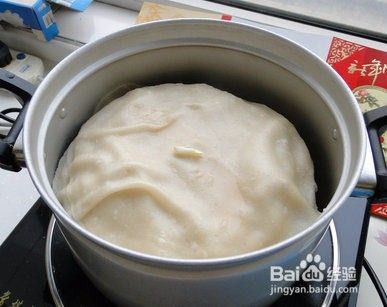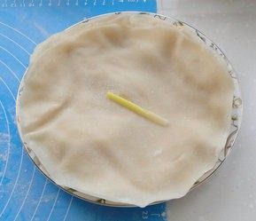 锅中水烧开转小火后,把擀好的第一张饼放在蒸屉上,加盖。