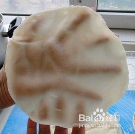 一张一张的慢慢揭开。看看这张饼,是不是很薄,还能看到饼后的手指呢。