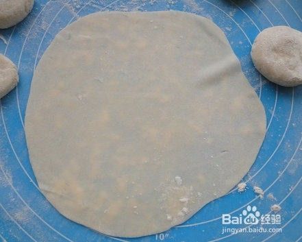 取一块剂子,尽量擀薄一些,多放些扑面。