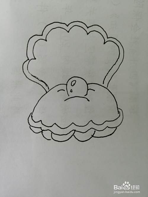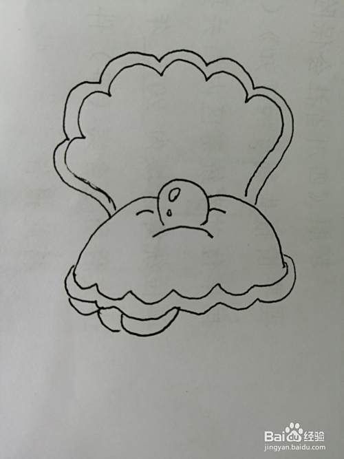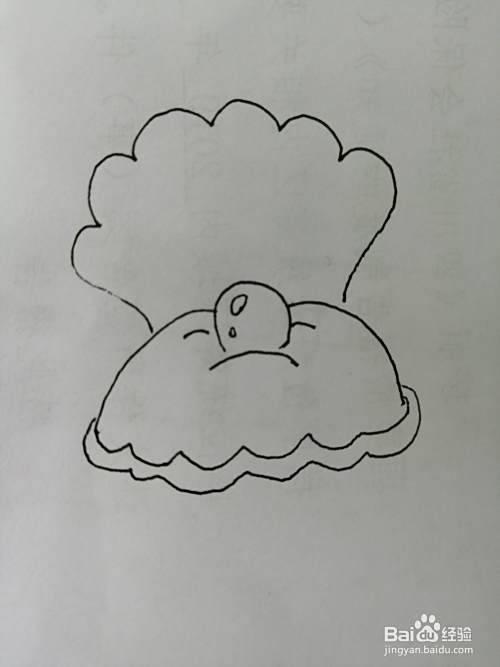 第五步,接着继续在贝壳的上面部分画出两个大一些的贝壳弧线。