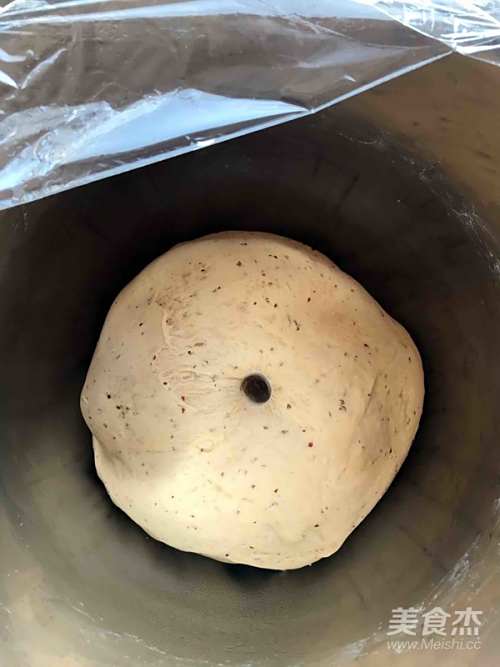 13手指蘸干面粉在面团中戳个小洞,小洞不塌陷不回缩表示发酵完成