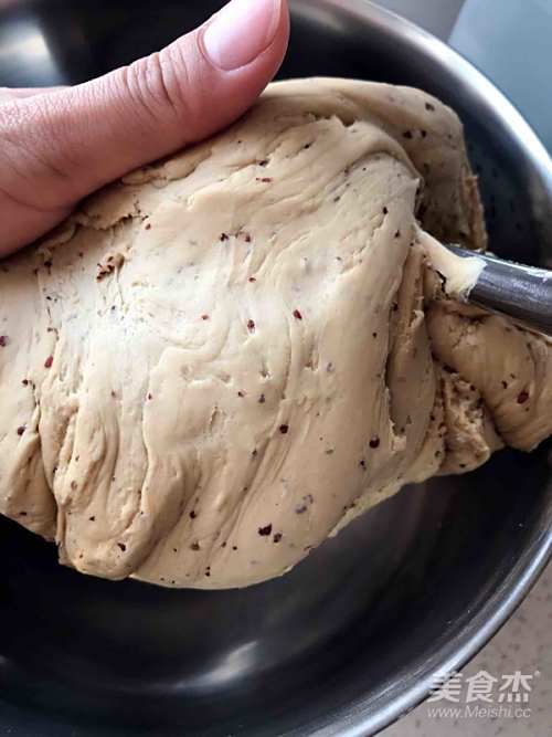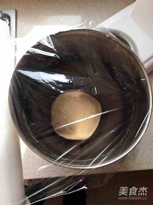 12将打蛋盆盖上保鲜膜,放置温暖处,让红枣红糖面团发酵到原来的2倍大