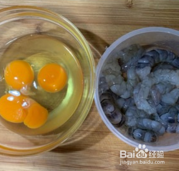 准备材料,虾仁加入少许料酒,胡椒粉,少许盐,腌制10分钟。鸡蛋加入一点油和盐,10克水搅拌均匀