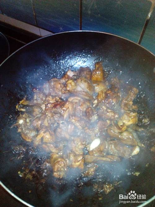 起火,锅热倒油,把去过血水的鸡倒入锅中,翻炒,把水份炒干。