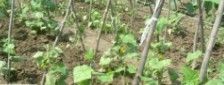 第三步:我们去找一个长长的干掉的树枝或者是竹子做一个架子插在黄瓜苗的旁边。