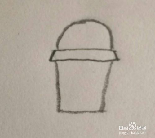 接着,画出杯子的上半部分,即杯盖的形状,一个圆弧即可。