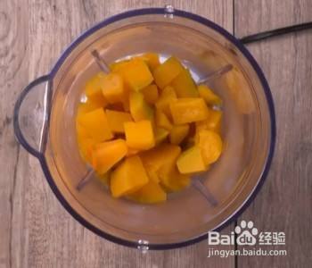 将新鲜南瓜洗净后切成小块,放进微波炉高火加热5分钟;