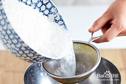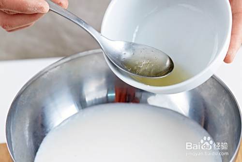 小苏打放入3ml水中提前融化,之后倒入米浆中,拌匀。