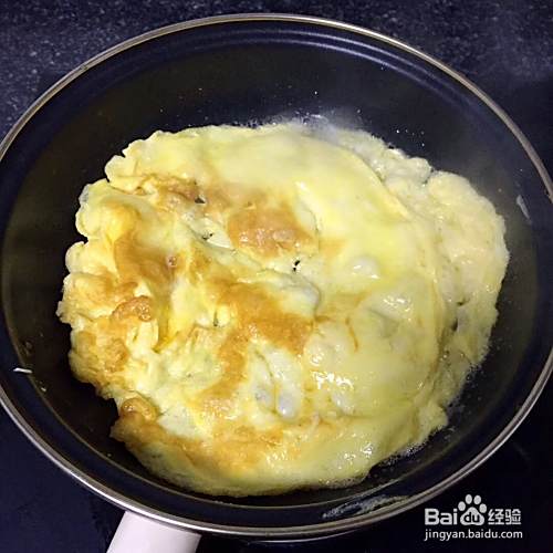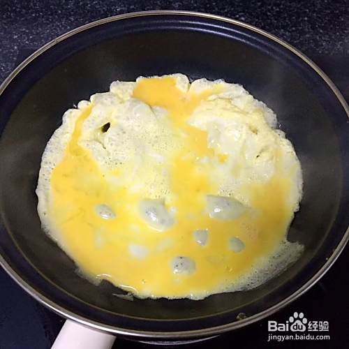 把油倒进锅里,把鸡蛋煎一下,翻过来