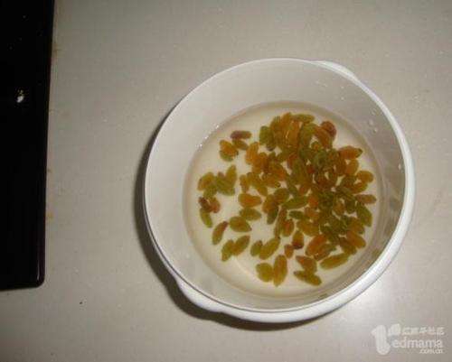 4把葡萄干切碎,放入水果碗中搅拌.这时候就成一碗果泥了,我一般不弄得特别碎,个别有点小块,还会有点咬头.这个就看个人喜好了.