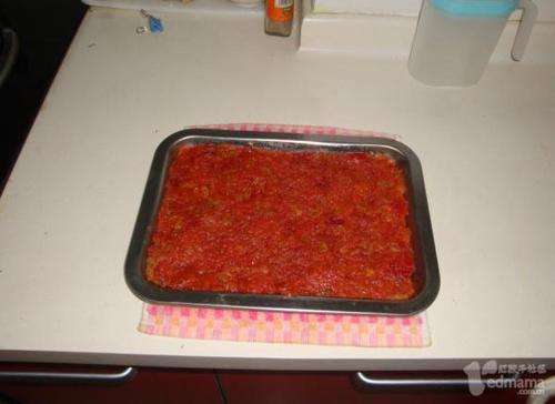 5找一平盘,把果泥平铺到盘里.抹平,然后放到暖气或地热上,烘烤干,(一般一个晚上就行),烘至表面硬整了,不粘手了.就翻过来再烘另一面,翻的时候最好找一平铲,尽量不辞露要弄坏了.翻过来以后另一面也要抹抹平.再烘一个晚上.