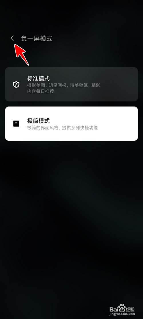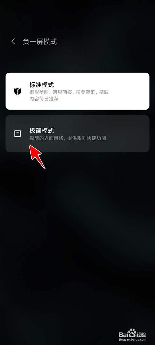 在负一屏模式中,点选“极简模式”。