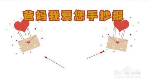 在爸妈我爱您手抄报的左下方画和右下方分别画两个爱心下方挂着一份信