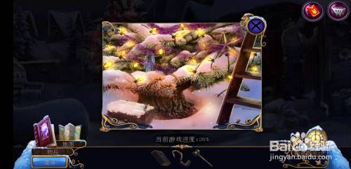来到圣诞树人字梯这里,用修枝剪剪断圣诞树上的电线和纸条,得到木头、黄铜星星和一个冰冻小雕像。