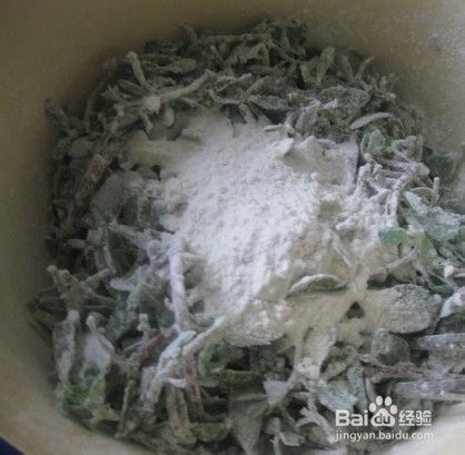 先撒入少量面粉,搅拌匀,然后撒入适量盐拌匀