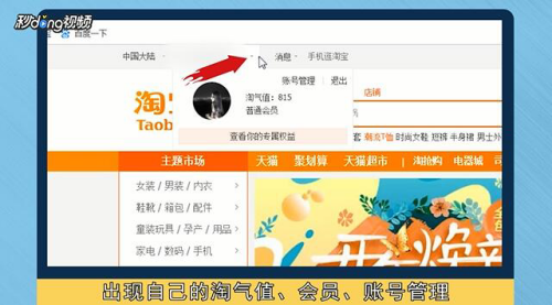 3如果是电脑上的淘宝,打开淘宝后点击左上角自己淘宝会员名后边的符号,出现自己的淘气值、会员、账号管理、退出,点击“账号管理”,进入账号管理页面,点击左边功能栏的个人资料,在昵称栏输入自己想要改的名称,然后点击下方的“保存”即可。