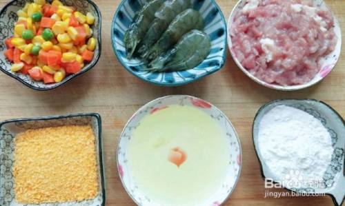 准备好食材(肉切成小块,大虾去壳去虾线,萝卜切丁)。