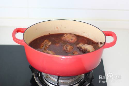 90分钟后,调入盐,继续炖30分钟,然后转大火稍稍收一下汁至汤汁浓稠即可。