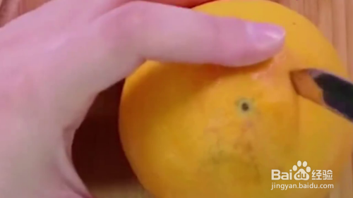 将橙子顶部开一个小口,然后将瓶子连着瓶盖的椎体部分粘在橙子开口处,再将橙子使劲揉出汁,你就拥有一个带盖的橙汁了,是不是超有趣和方便