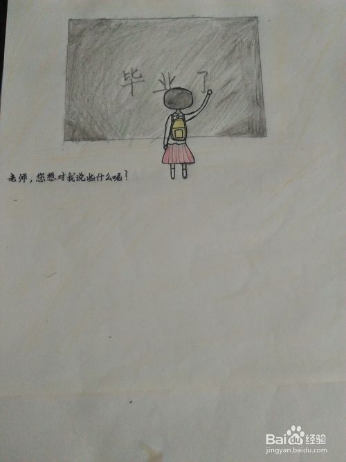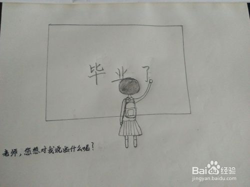 然后,我们在黑板上写上‘’毕业了‘’,如图所示。