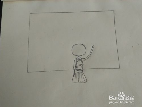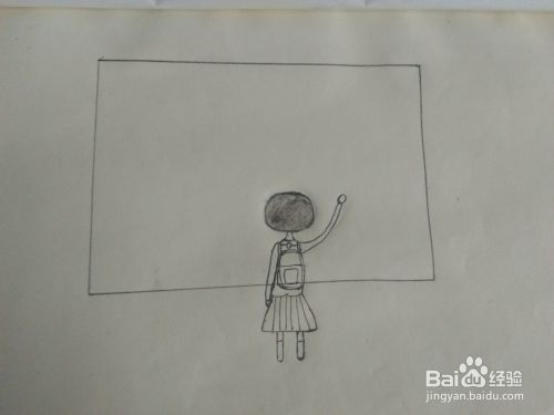 接着,我们画出站在黑板前女孩的上半身,如图所示。
