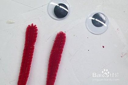 剪出红色的扭扭棒,再准备两个大的活动眼睛。
