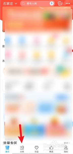 打开中国移动app,点击下方的分类。