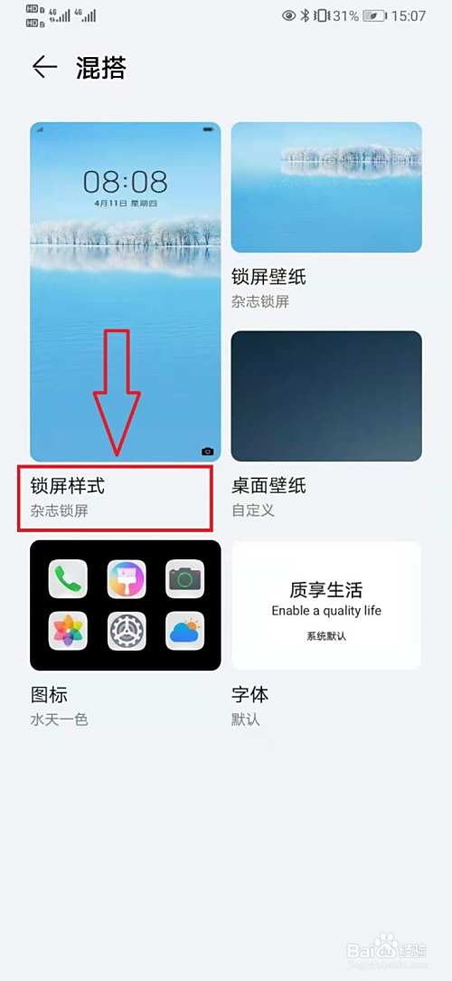 进入混搭设置页面,点击【锁屏样式】设置项,如下图所示。